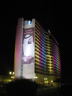 We enter the club and it was a similar scene to the entrance at the other hotel. As we step inside, I immediately notice this club is a lot more focused on dancing. The Intercontinental had several tables around the club, constricting the dance floor. Not the case here. However, I also thought that the club was smaller than what I expected. The may have more than one club there, I don't know, but I was expecting a grand hall of some sort, but the place was about the size of the Intercontinental's club. The girls seemed to disperse, most talking with guys at a table or bar (they would introduce me to these guys they meet as their big brother- which I would expect probably confused that heck out of these Emirati guys because all the girls in the group are white; most of the guys were really cool and friendly to talk to, though needless to say, we were probably all a little more relaxed than we normally are). I danced by myself just enjoying the music and the ambiance. You had people from all over and they were really dancing, it was fun. I saw a girl with a Phillie's hat and sneakers, and some other guy with a Yankee's cap. They danced like they were from the states, more urban and....on beat. Anyway, I'm not sure how long we were there but the club eventually began to shut down and ushered everyone out to the front. So we waited a while, just hanging out in the front, talking and laughing with a couple of the guys the girls met. I noticed the valet pulling the shiny cars around: flashy sports car here, Bentley there, car name I can't pronounce and have never even heard of here. To be fair, I only truly remember seeing one Bentley, but again I may not have been the most astute observer at this point. In fact, I was later told that a pretty important person was at the club the whole time we were there (of whose specific name or position I will refrain from mentioning because I kind of work for them now, but think royal). I can't imagine how I didn't notice that... Anyway, we all made it back to the hotel safely (taxis) and that was it. Great night. Good times.