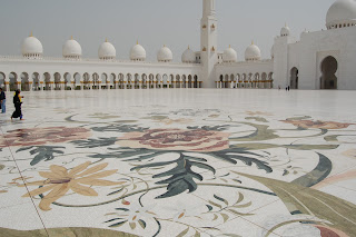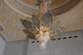 So anyway I was really looking forward to the inside of any mosque, just to see the architecture. There was no better mosque to visit for that than the Grand Mosque. The detail put into the place is amazing. As Juan, a colleague, and I went on the tour, we learned how patterns on the floor correspond with patterns on the ceilings (related to the idea of "so it is on Earth so shall it be in Heaven"), and how the flowers painted on the walls in the northern part of the mosque are flowers from the northern part of the world and the ones painted in the southern part of the mosque are flowers from the southern part of the world. We also learned that whereas all the other mosques are just lit green at night, the Grand Mosque is lit varying colors based on the moon cycle, from dark blue to white. So whenever you see the mosque, it can be any color on that color progression. These are just a few of the things they told us, I wish I remembered everything.