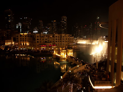 The best thing of the entire trip, for me at least, was the dinner at Dubai Mall. We ate at a Thai restaurant and we ended up with some great seats outside on the balcony overlooking the nightly water and light show. The picture you see is actually the view from my seat at the table; I didn’t move at all to get it. The same goes for the video. The lights and water are all choreographed to music and there are at least 3 different songs, each with its own “routine.” I was told that it plays every 10 or 15 minutes but I think it was more like 20 to 25 minutes. When it did come on it was a site to see, truly spectacular.
