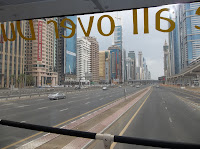 The road from Abu Dhabi to Dubai is a straight shot, about an hour and ten minutes, if you are driving conservatively. There were menacing clouds overhead at the start of the drive. That happens sometimes so we didn’t think anything of it. But it didn’t stop there. About thirty minutes into the trip we started to see and hear the pitter patter of raindrops on the windshield of the car. We were all shocked. I can count on one hand the amount of times it is expected to rain in Abu Dhabi this year and still have a couple of fingers left. And of all days it decides to come down on the single day we visit Dubai on a bus tour with an open roof. Great. Though the rain was not heavier than a drizzle or sprinkle where we were driving, it apparently had come down much more in Dubai, as I noticed size-able puddles on the ground once we got there. Fortunately, the rain didn't affect our day much.