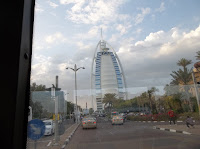 The bus tour was a bit of a disappointment. They used a recording to give us the tour instead of a real tour guide with little anecdotes about various locations, or charming details that most may not know. Natova and I didn’t like it but think we understood why they didn’t use a tour guide. The town doesn’t really have a history like St. Augustine, or Chicago, or really anywhere. Its so young, littered with multimillion dollar buildings, but you just can’t buy history. It did take us onto the Palm Jumeira (a huge man-made island jutting into the Arabian Sea in the shape of a palm tree...yes, a palm tree. Google it if you haven't already, its amazing to see) and the Atlantis Hotel, two huge landmarks of Dubai. We also drove by the Burj Alarab, the largest free standing hotel in the world as well as the world's only 7 star hotel. Interesting story one of my colleagues told me about this building. The architect that they hired was apparently Christian (though on his website he claims he is agnostic), but the Emiratis didn’t think much of that because they hire out their architecture to people from all over the world with various religions. Well once the structure was up, everyone loved it. The only problem was that some think that the architect had ulterior motives. There was a lot of speculation that Wright had set out to construct the one of the largest crosses on the planet right in the middle of the Middle East. Sure enough, if you see the building from the ocean looking inland (it sits on the coast) you can see a huge vertical beam and horizontal platform crossing just above the center resembling a perfect cross, all cleverly embedded in the design of building. From what I hear the Emiratis were pretty upset, but what can they do? Can’t knock it down after all the effort put into it ($650 million to be exact). So there it stands to this day in all its "glory."
