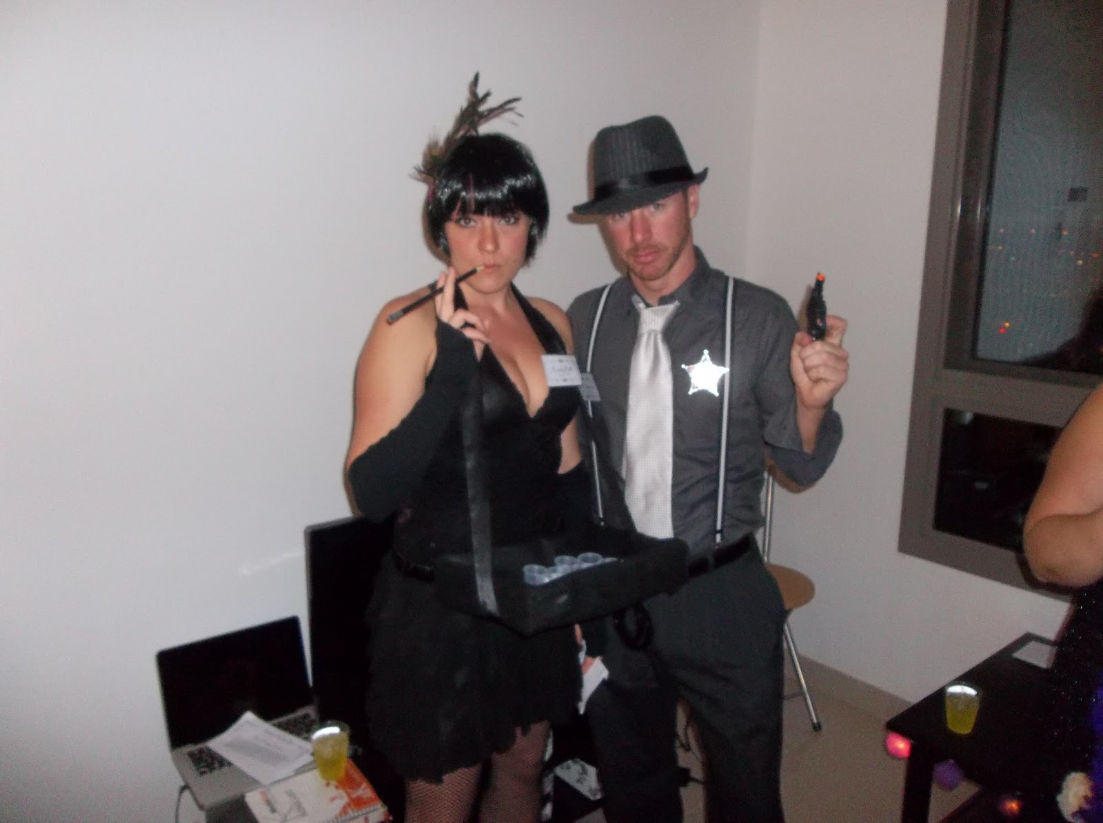 So after we mingled again, trying to gain some information on who would want to kill Notorious Nick, which is pretty much everyone, we began to wrap up the whole thing. I won’t say who did it for the sole fact that you may want to do a murder mystery and get this same kit, so I don’t want to ruin it. I will say it wasn’t me. At the end there were awards given to best dressed, most conniving (i.e most money) and best actor/actress. We all filled out a card nominating who we thought deserved what. The Cigarette Girl took the prize for most money, as she was actually going around passing out shots and collecting tips with the play money. She also got best dressed. She had props too so I think that helped her. But I was most interested in Best Actor. I really thought I had a shot. And the Emmy goes to……Natova for her role as Molly Mol!!! I was crushed. If I wasn’t married to her I would demand a recount. No actually she did a good job, really got into the part. I think it was throwing herself onto Nick’s body that won everyone over. I should have made a scene or something. It’s okay, next time I know.